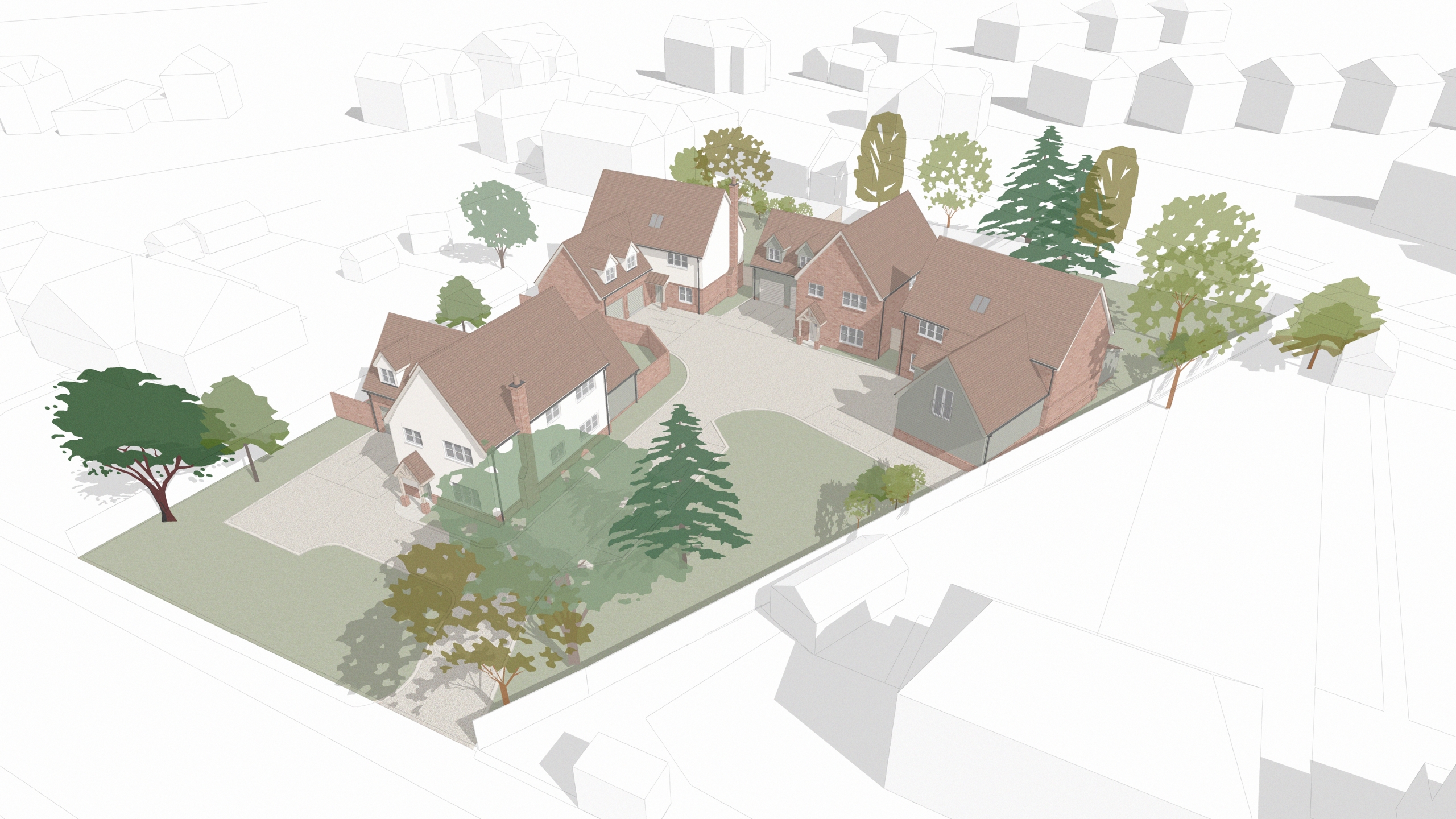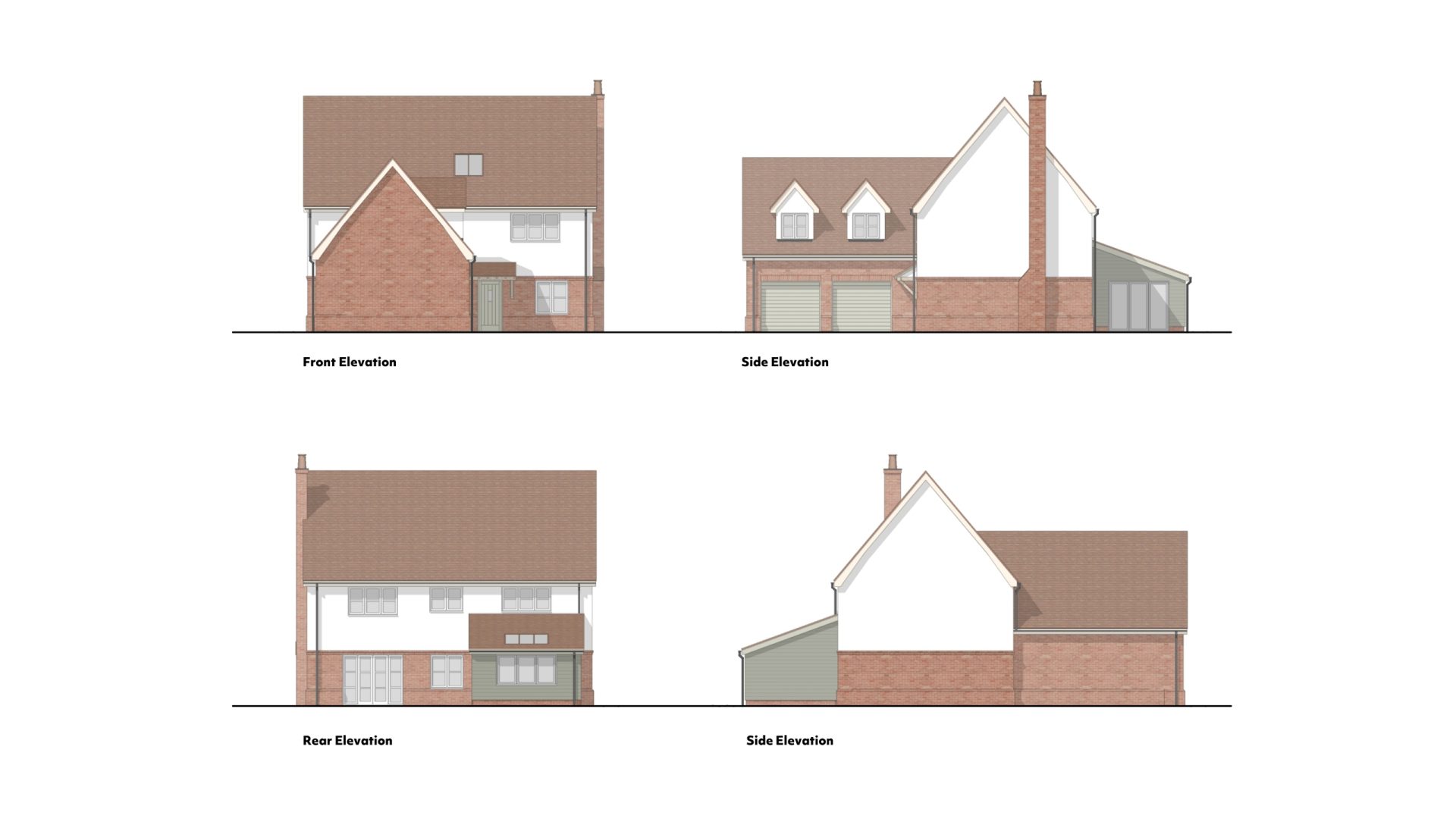 Designed for Sunbury Homes, this collection of four red-brick family homes blends modern comfort with traditional detailing. Set on the edge of the village, the scheme was delivered from concept to completion, ensuring every stage reflected the same design integrity and attention to detail.