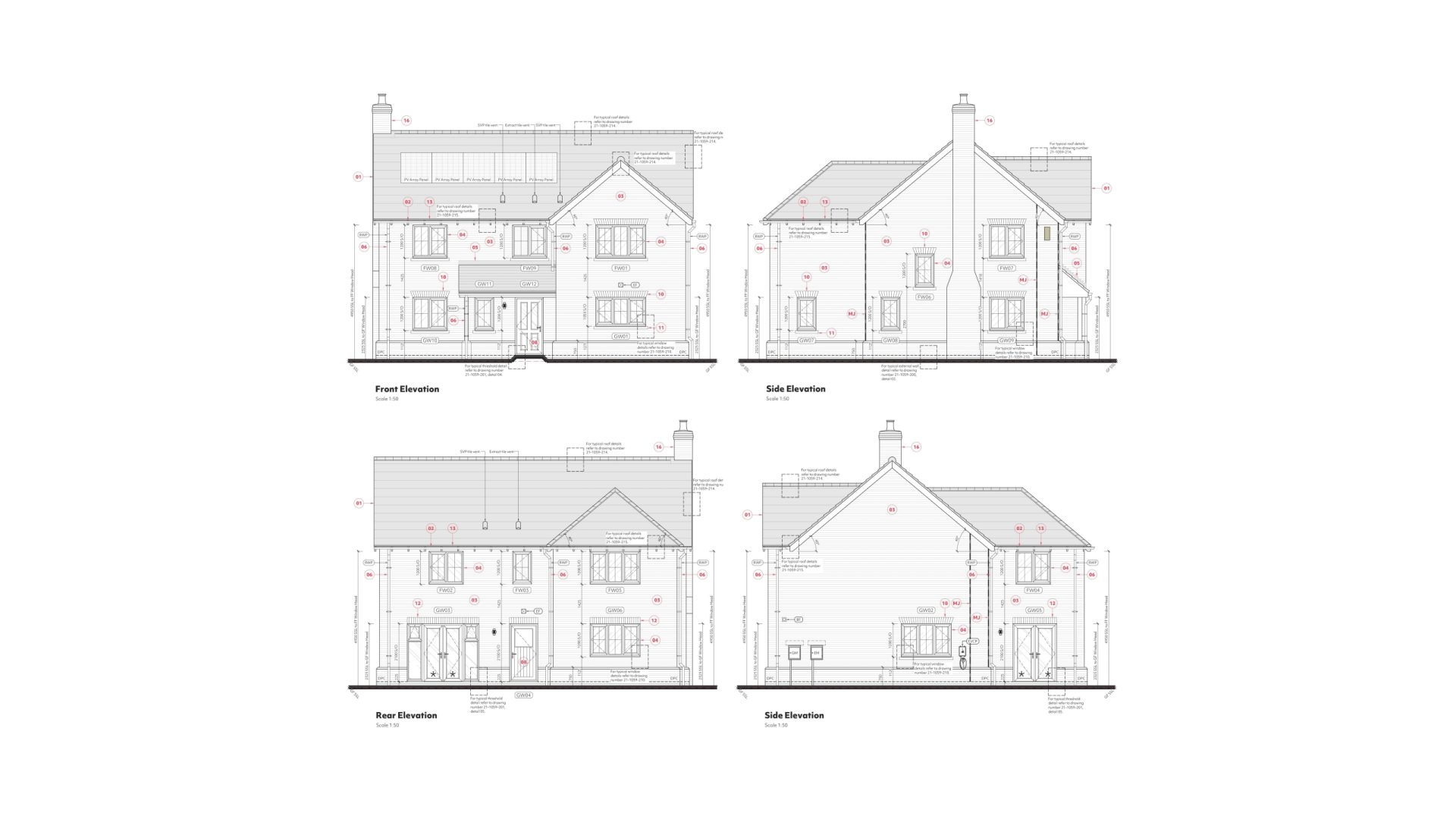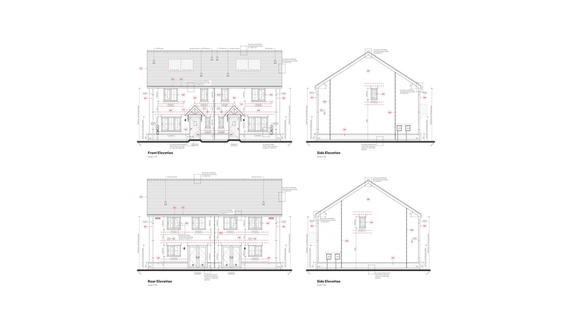 Nine new homes extend the Essex village of Steeple Bumpstead with traditional character. Working with Aviary Homes, we delivered a detailed technical drawing package that helped achieve the development’s high-quality elevational finish.